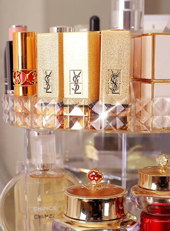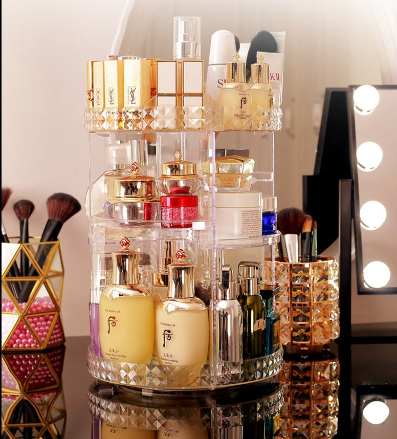 Finally organize your beauty products in one spot! This 360 degree rotating cosmetic storage is perfect to set aside to easily view and have access to all your beauty needs.