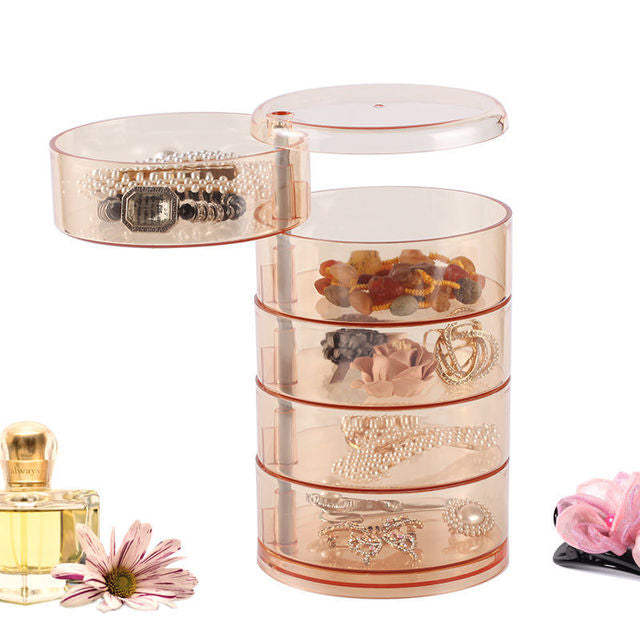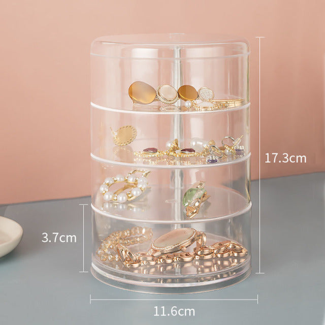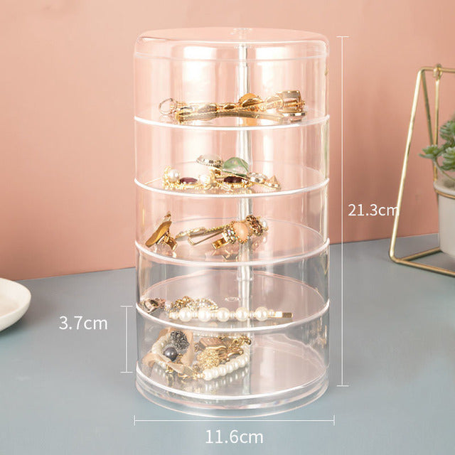 This durable and sturdy rotating storage box can easily display small objects such as your jewelry, watches, and so much more! It has a 360-degree rotating design with cover that comes in multiple layers and colors.